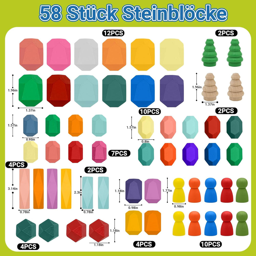 RunHero 58 Stück Stapelsteine Balanciersteine Montessori Holz Bauklötze Spielzeug für Kinder Stapelt