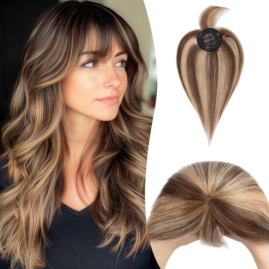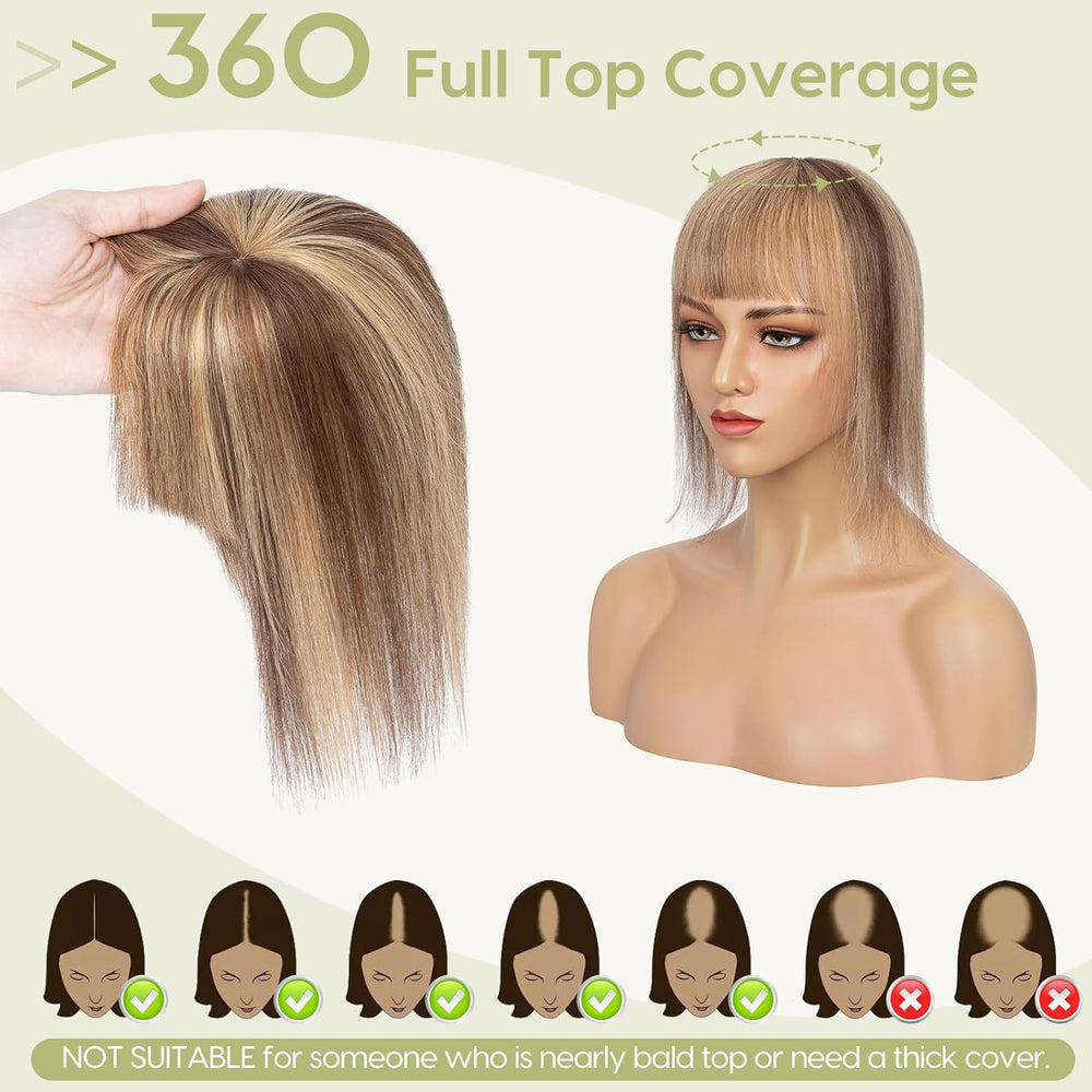 S-noilite Echthaar Hair Topper für Frauen mit Pony Haarteile für Dünnes Haar Echtes Menschliches Haa
