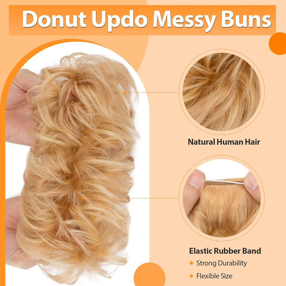 S-noilite Echthaar Dutt - Scrunchies für Gewellt Haar für Frauen, Elastisches Haarteil mit Gummiband