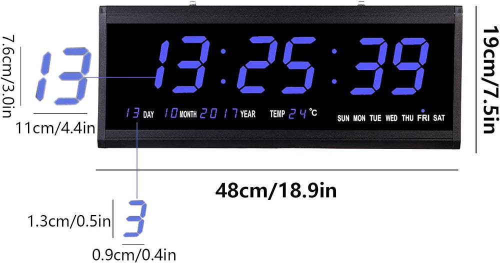 SABUIDDS 48cm Led Digitale Wanduhr mit Temperaturanzeige Kalenderuhr Wanduhren Digitaluhr Ziffer Dis