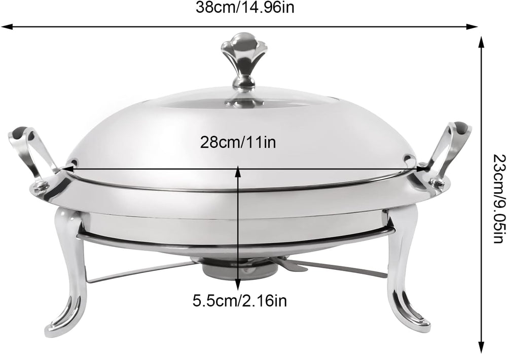 SABUIDDS 3L Edelstahl Warmhaltebehälter Speisenwärmer mit Rund Mahlzeit Brennpastenbehälter Chafing