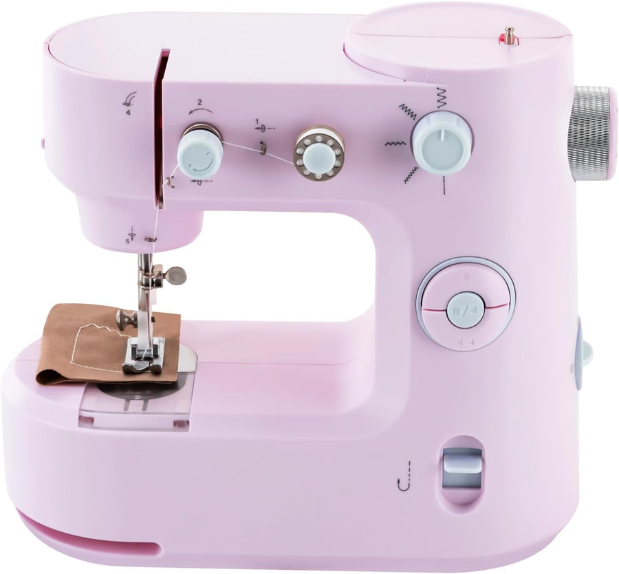 SABUIDDS Nähmaschine Rosa für Anfänger und Kinder, mit Hand- und Fusspedal, 5 Nähprogramme für Häuse