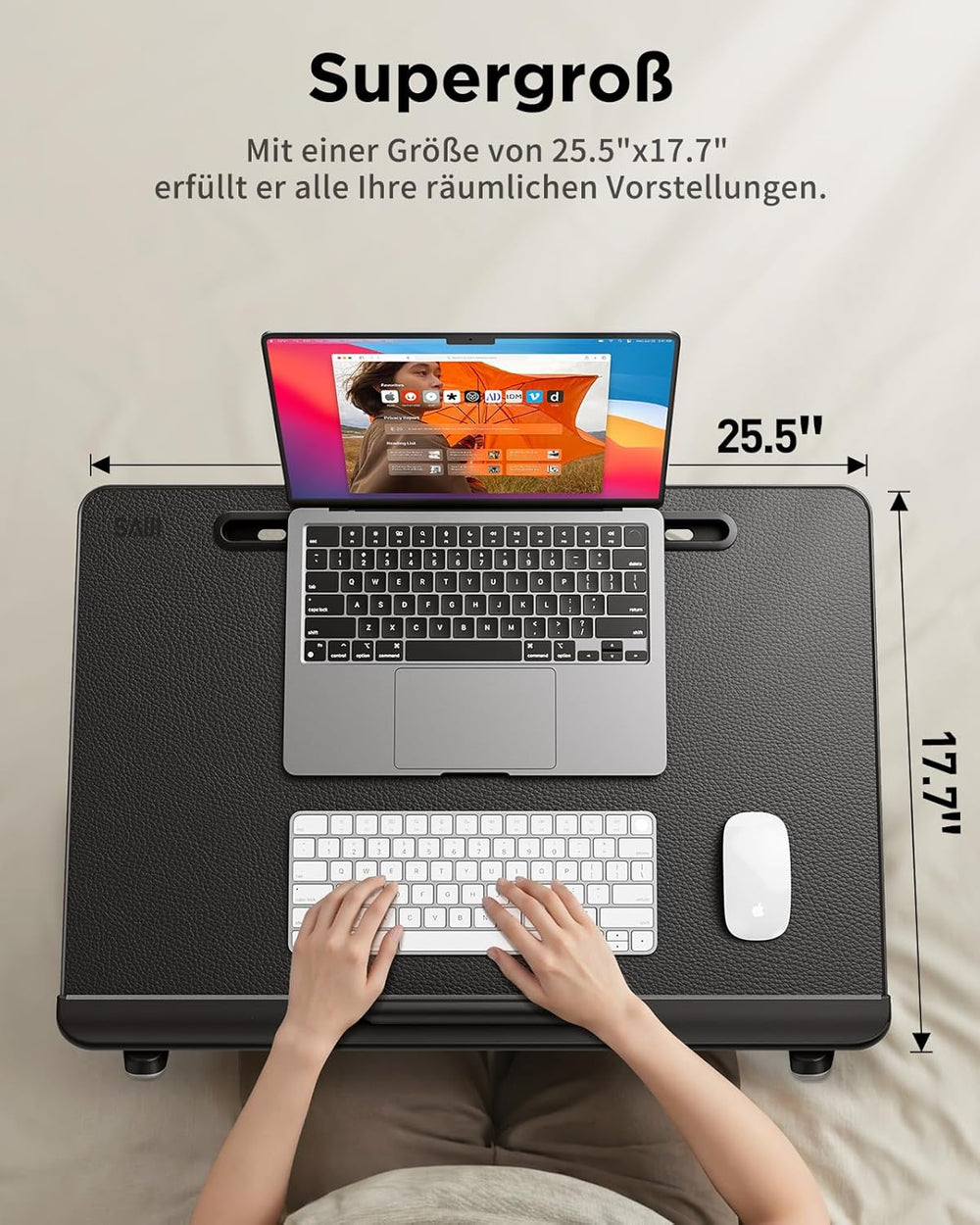 Laptoptisch fürs Bett, SAIJI Bett Tisch, komfortabel Tischplatte aus Leder, einstellbare Höhe, Neigu