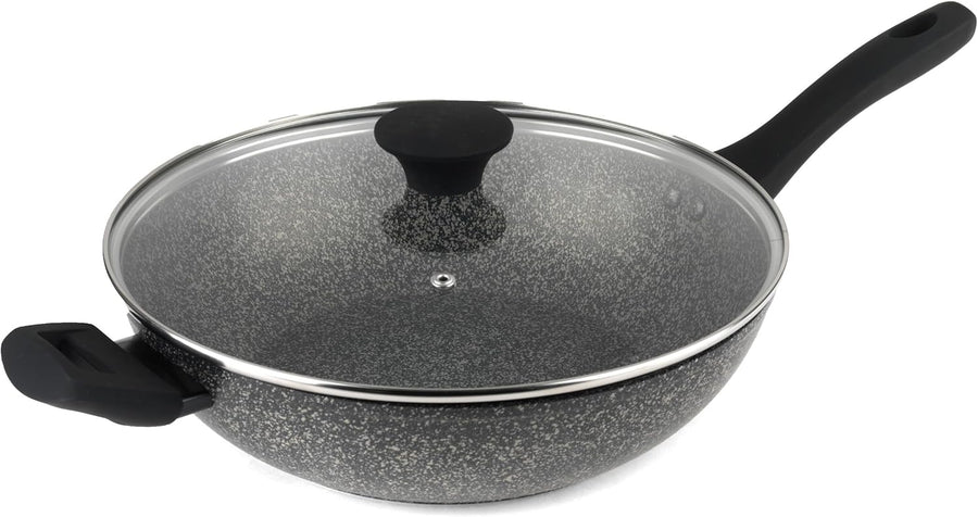 Salter BW02772G Marblestone 28cm Wokpfanne - Antihaftwok mit Deckel, PFOA-frei Wok, Spülmaschinenfes