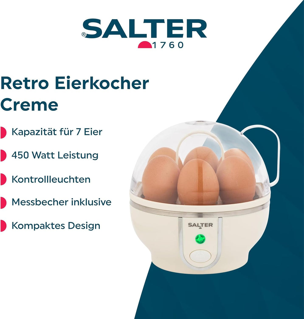 Salter Retro Cream Eierkocher - Weich-, Mittel- & Hartgekocht, Kapazität für 7 Eier, Kontrollleuchte