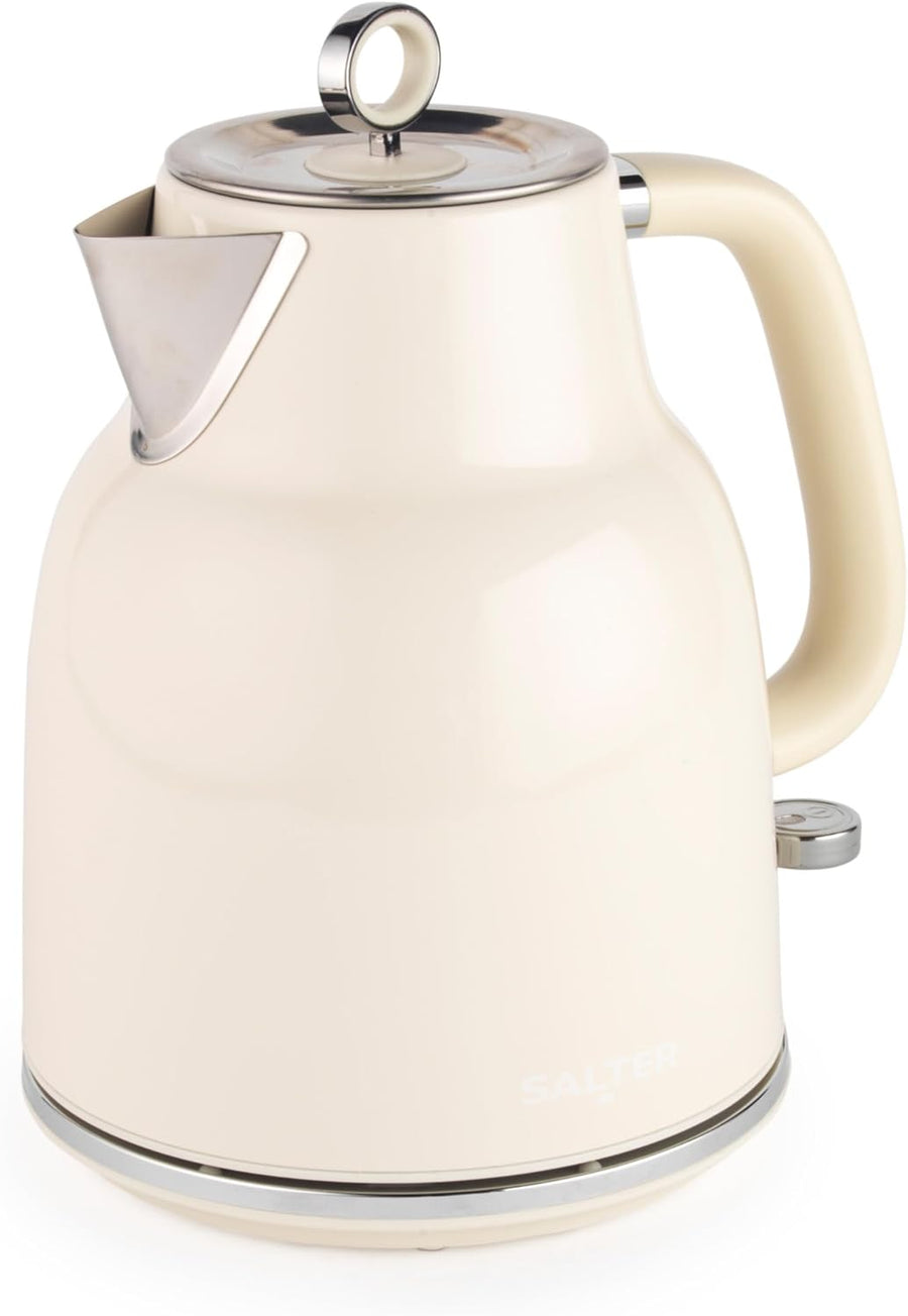 Salter Retro Creme Wasserkocher - 1,7L, 360°-Basis, abnehmbarer Kalk-Filter, Flaches Heizelement, Tr