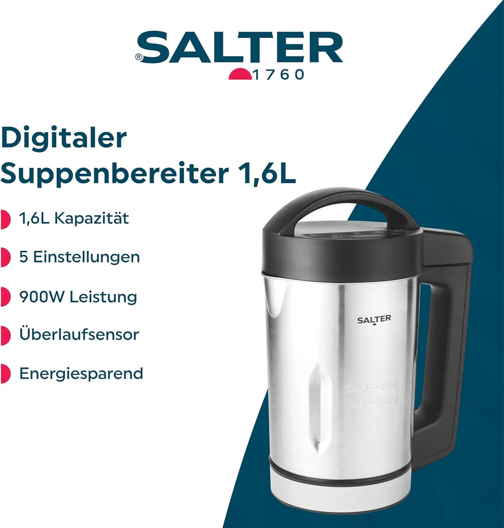 Salter Digitaler Suppenmacher - 1,6L, Mixen von stückiger & glatter Suppe, ideal für Grosskochungen,