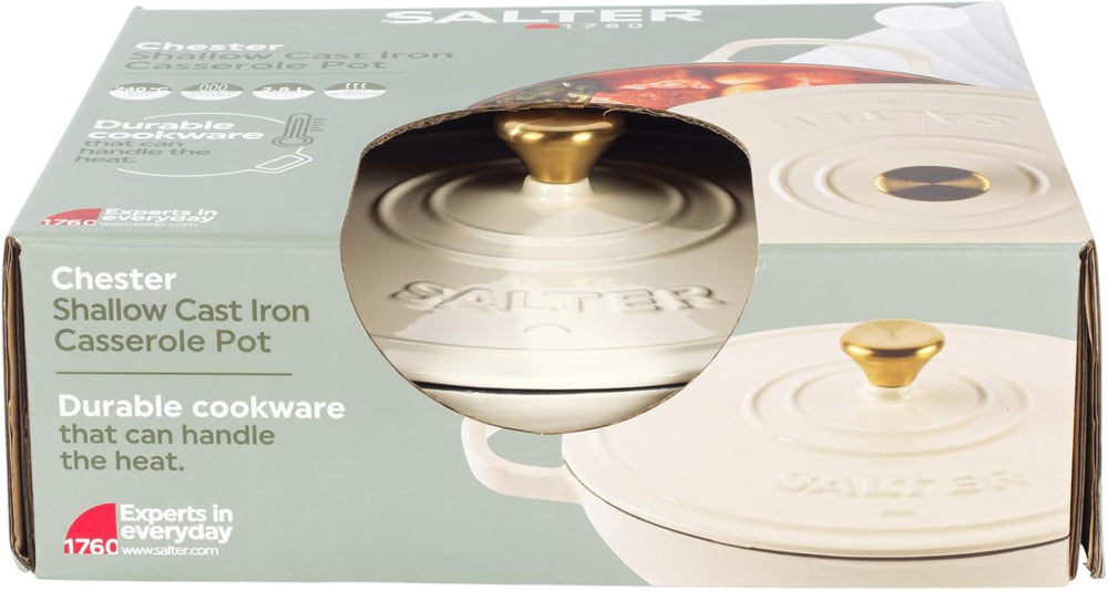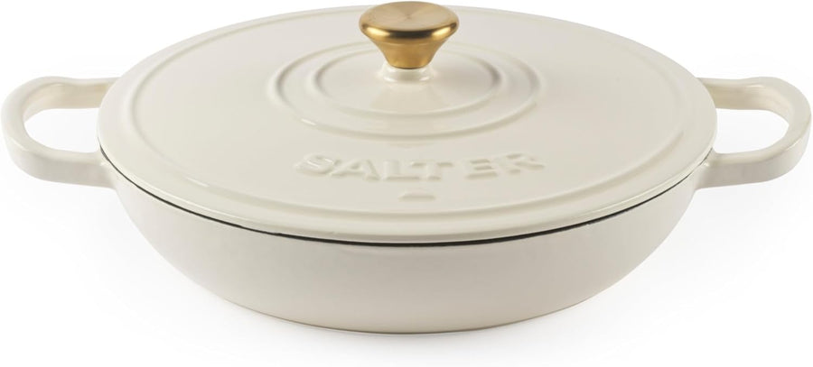 SALTER Chester Flacher Gusseisen-Auflauftopf – 30 cm Dutch Oven, Selbstschöpfender Deckel, Langlebig