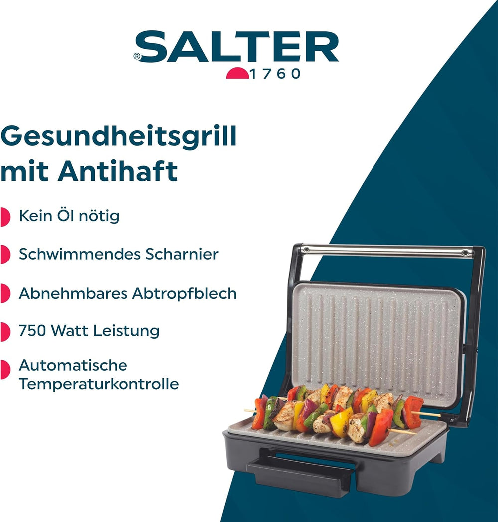 Salter Marblestone Gesundheitsgrill, Panini-Maker mit Antihaftbeschichtung, Kein Öl nötig, Schwimmen