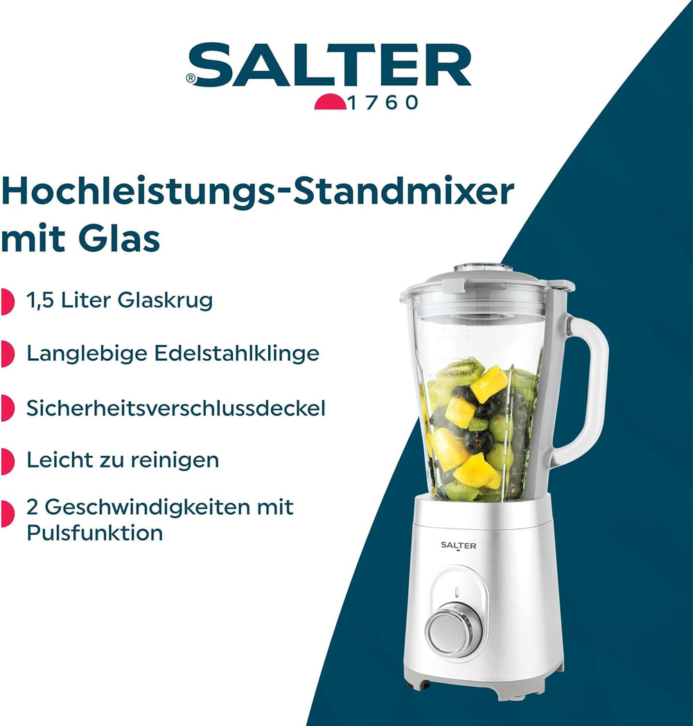 Salter Standmixer Glas 1,5L, Smoothie Maker & Mixer für Küche, Hochleistungsmixer mit Pulsfunktion,