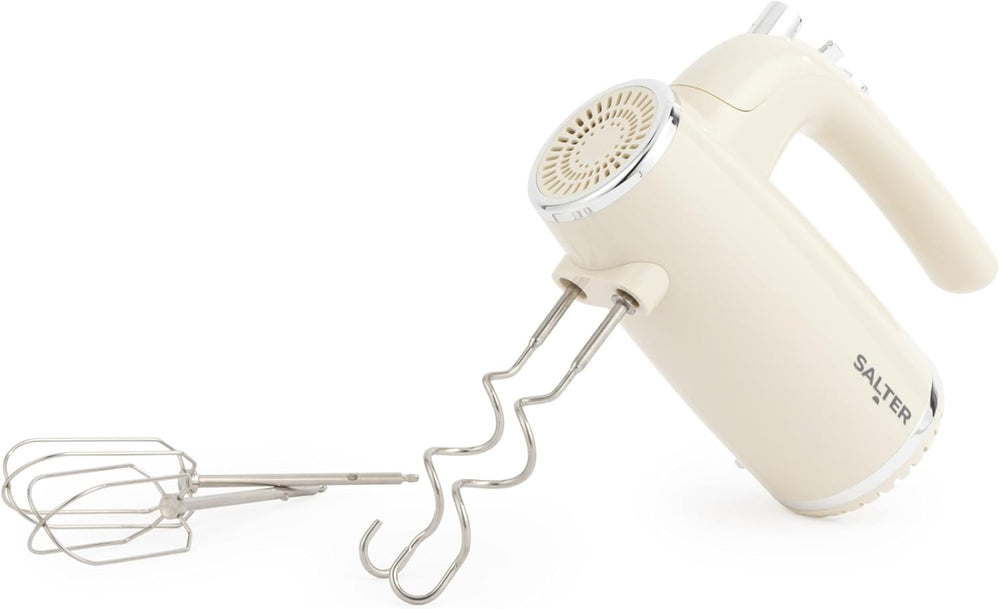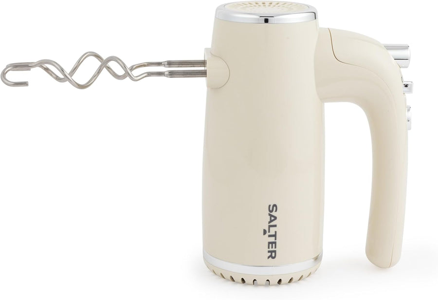 Salter Cream Retro Handmixer – Elektrischer Schneebesen, 5 Geschwindigkeiten + Turbo, XL Chrom-Schne