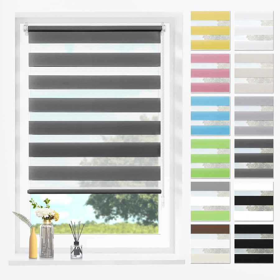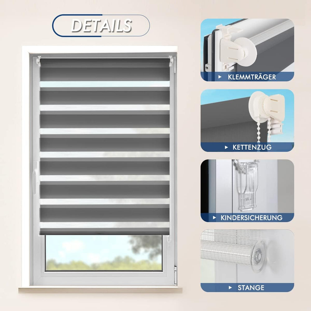 SBARTAR Doppelrollo Klemmfix Rollos für Fenster ohne Bohren & zum Bohren (Anthrazit 90 x 130cm) Duo