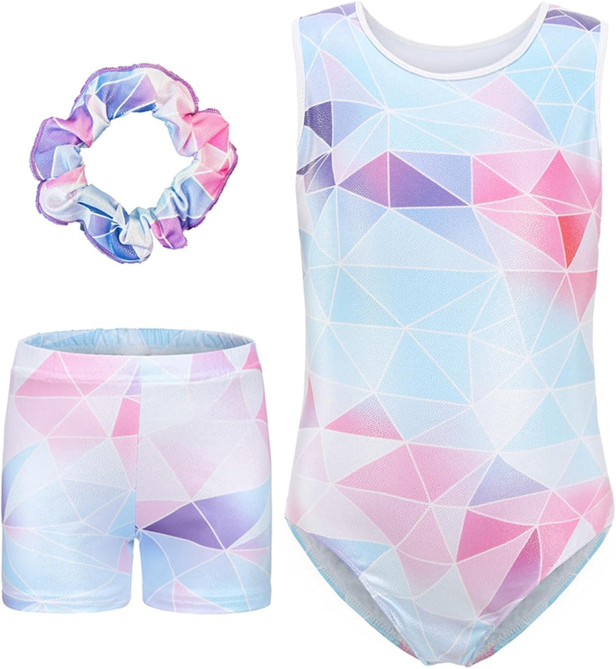 SEAUR Mädchen Turnanzug Turnshorts Haarband Set Kinder Turnen Trikot Shorts Gymnastik Ärmellos/Langa