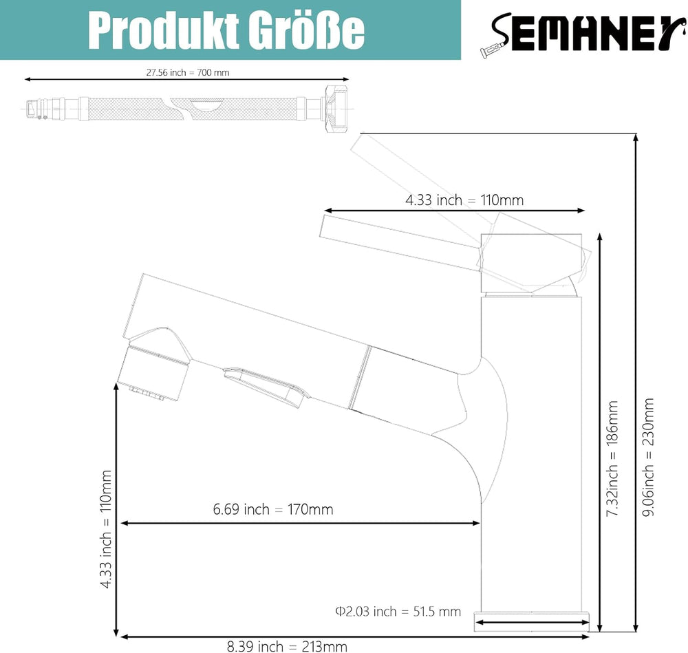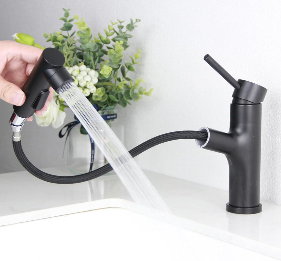 Wasserhahn Bad Schwarz, SEMANEY Hochdruck Waschtischarmatur mit Herausziehbarer Brause, Einhebelmisc