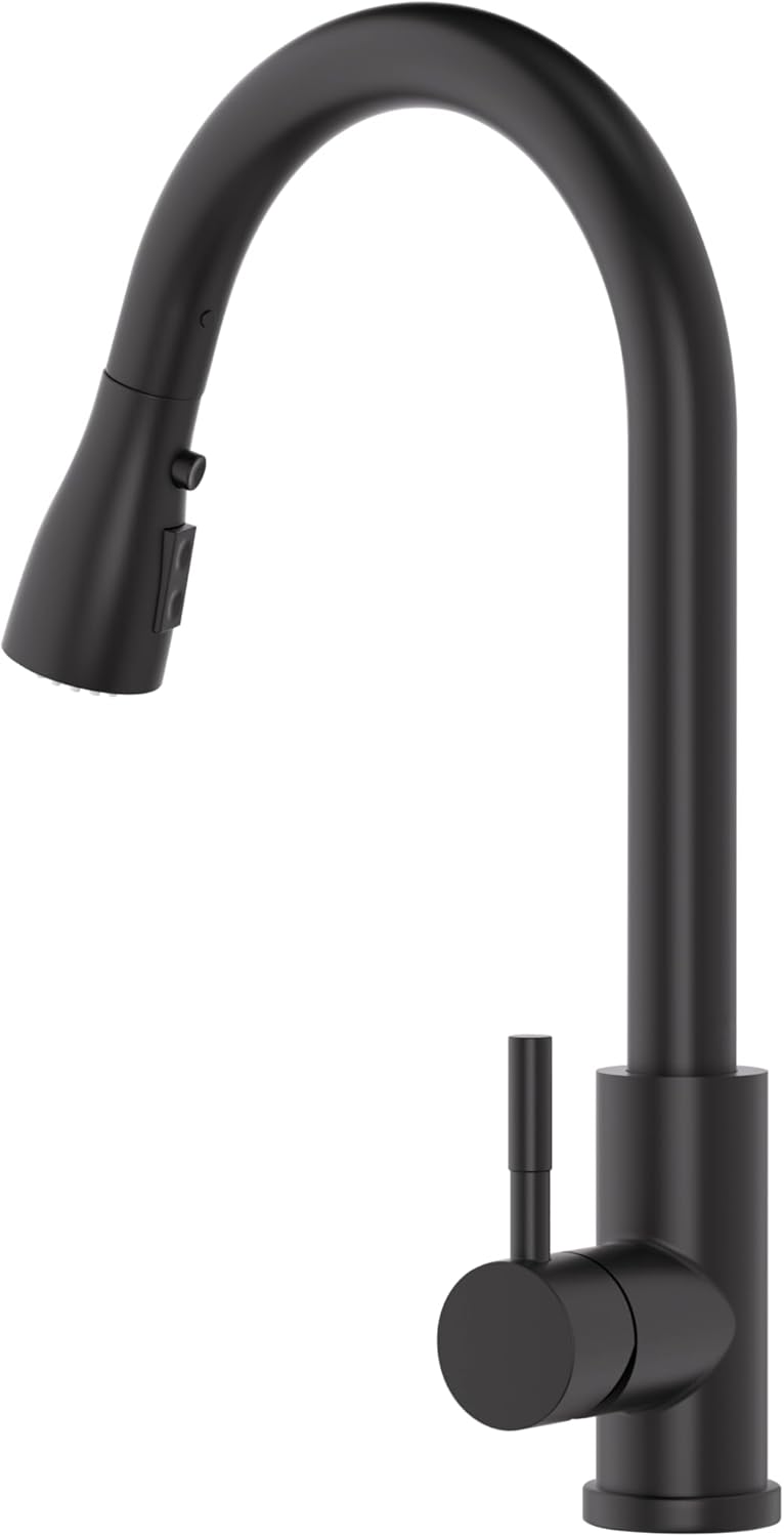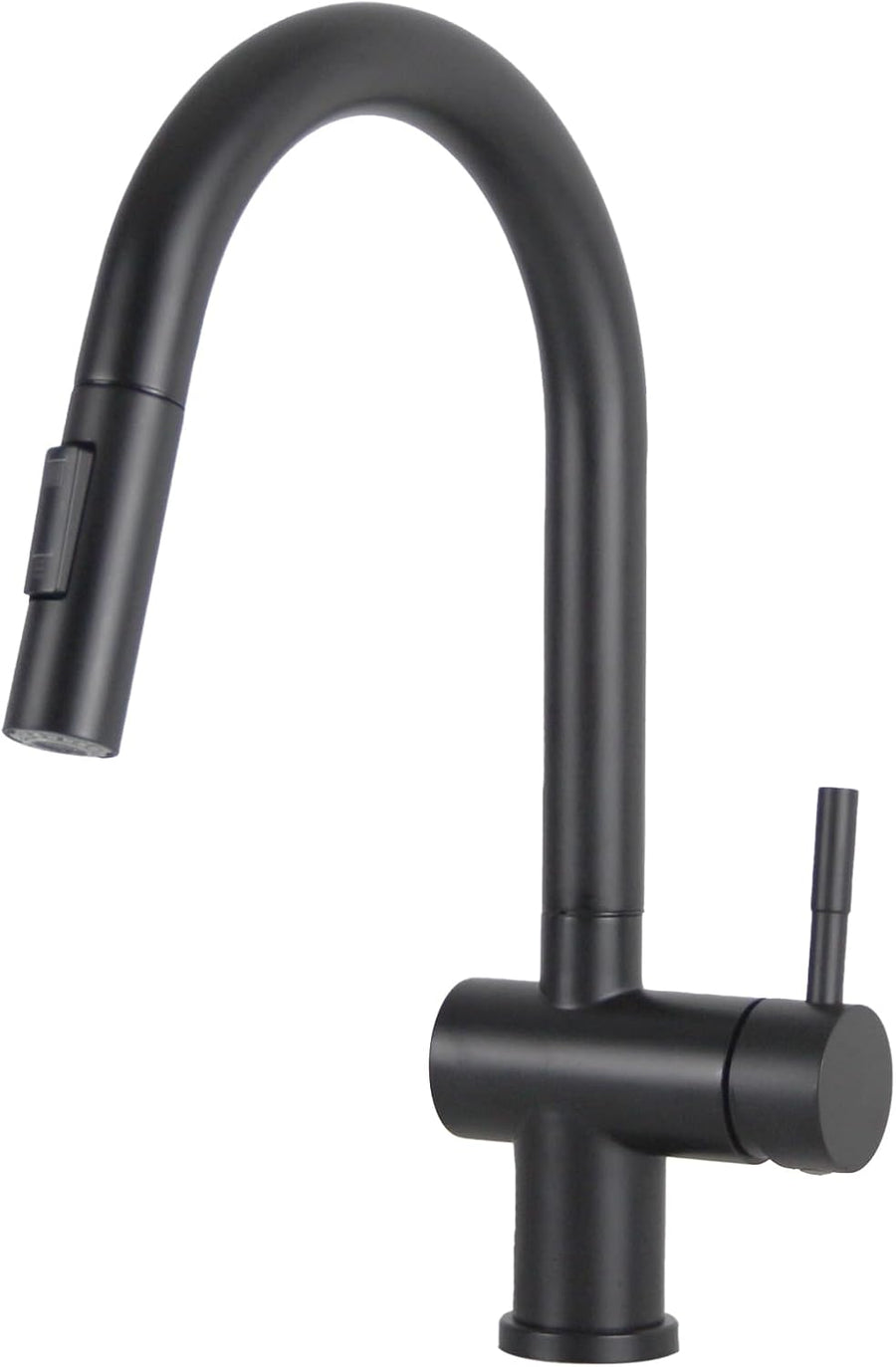 Wasserhahn Küche Schwarz, Hochdruck Küchenarmatur mit Brause Ausziehbar 2 Wasser Modi, 360° Drehbar