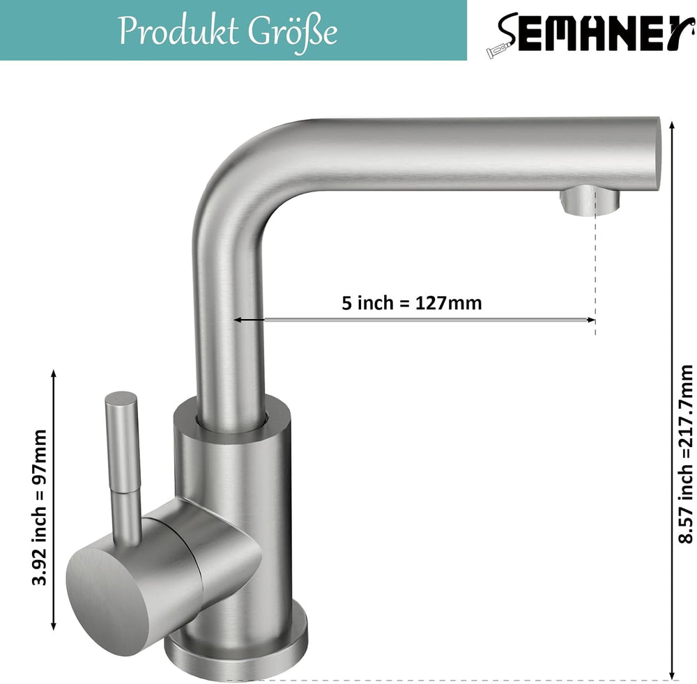 Wasserhahn Bad, SEMANEY 360° Drehbar Waschbecken Armaturen, Einfache Montage Einhebelmischer Waschbe