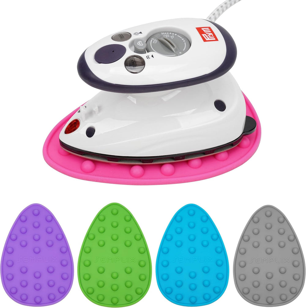 Prym Mini Dampf Bügeleisen Mit SEMPLIX Silikon Ablage (lila) Im Set, Kleines Leichtes Dampf Bügeleis