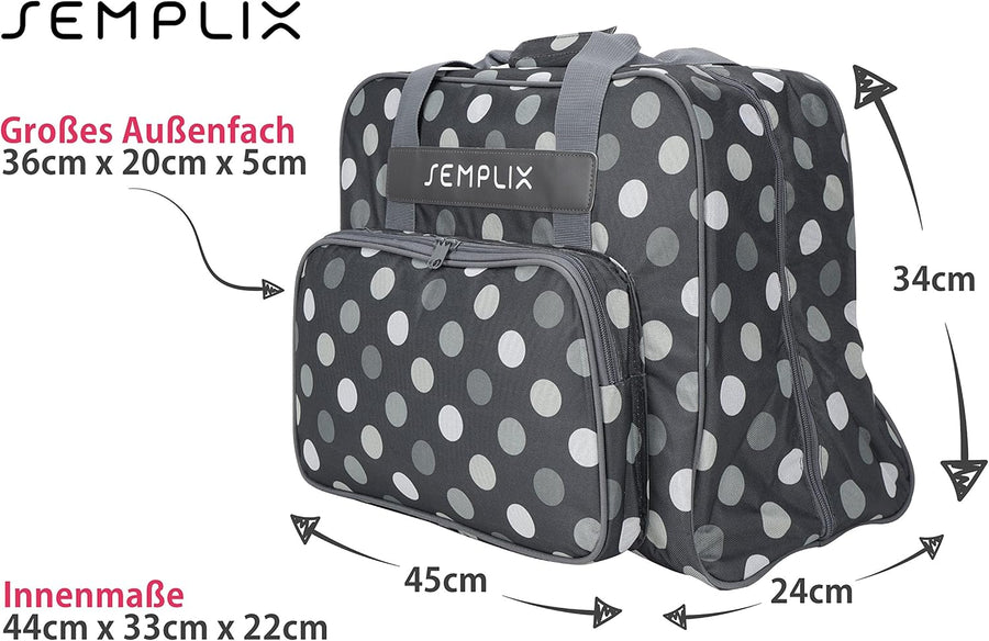 SEMPLIX XL-Nähmaschinentasche, Polka Dots Anthrazit/Grau, 52x42x27 cm, Grosse stabile Transport und