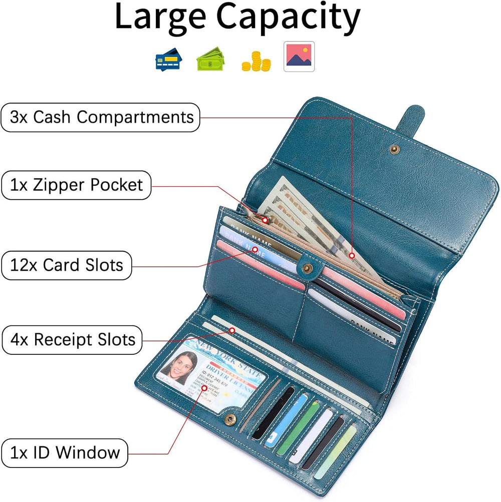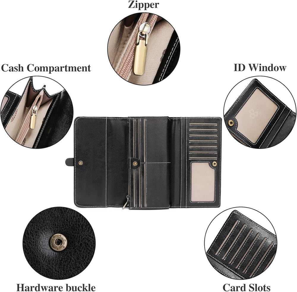 SENDEFN Portemonnaie Damen Gross, RFID-Blockade Damen Geldbörse, Grosse Leder Geldbörse für Damen mi