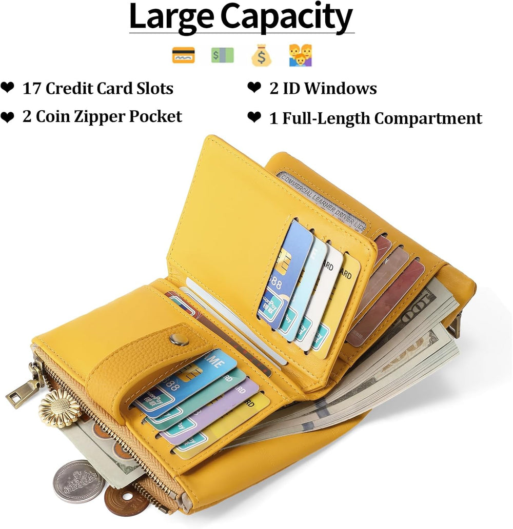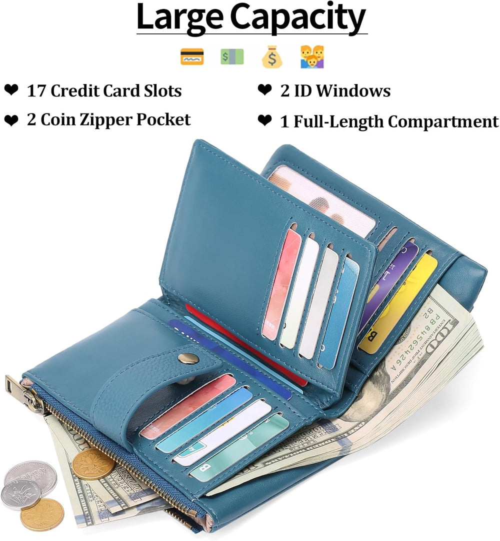 SENDEFN Geldbörsen für Damen Mittelgrosse, Dreifach Faltbare Portemonnaie Damen aus Leder, RFID-bloc
