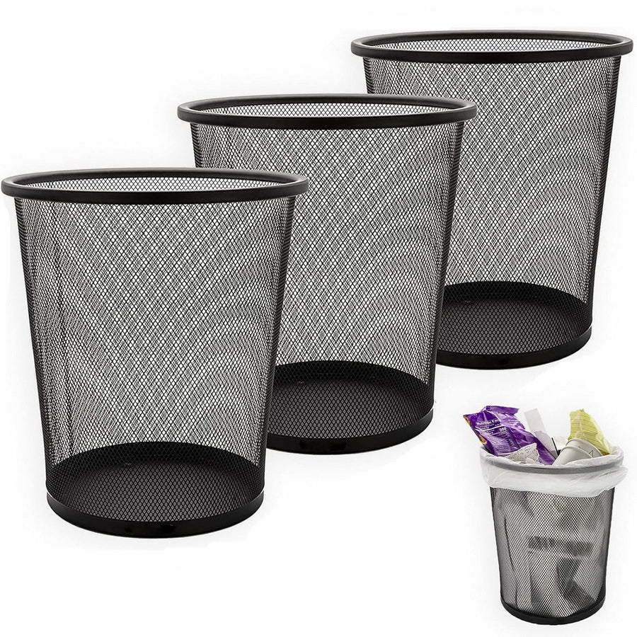 SENENQU 3 Stück Papierkorb Metall, 12L Büro Mülleimer Schwarz Metall Gitter, kleine Papierkorb Mülle