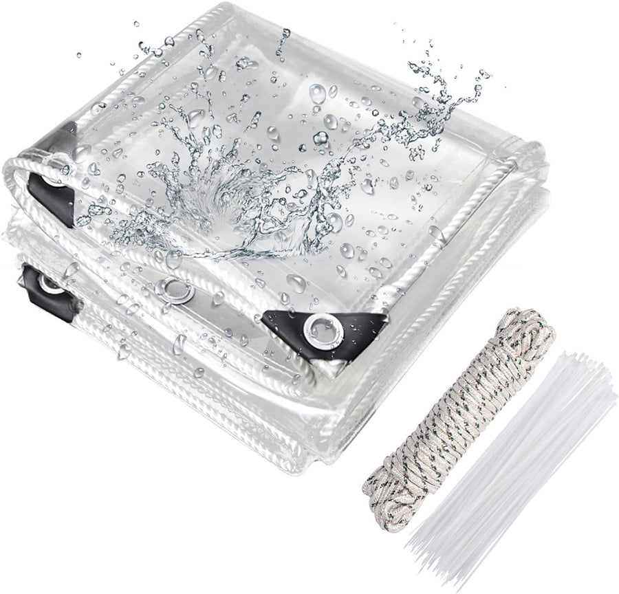 Transparente Plane mit ösen 420g/m² 3x3m, Abdeckplane Zeltplane Wasserdicht mit Seil und Kabelbinder