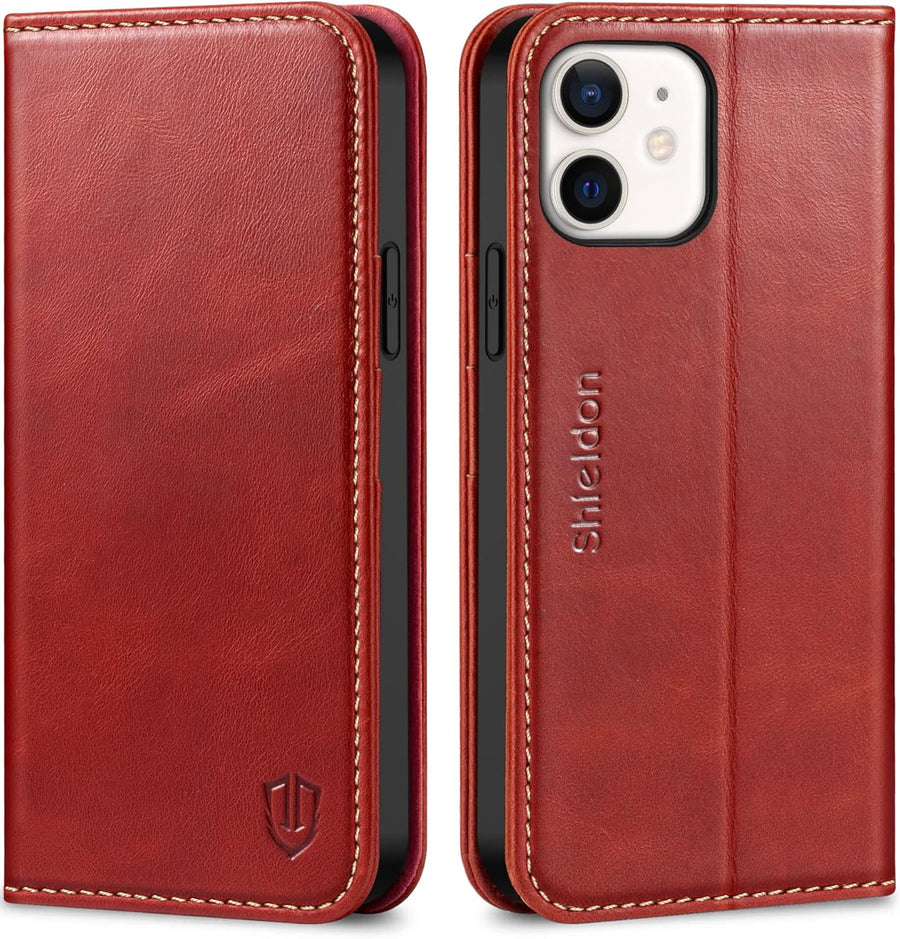 SHIELDON Hülle für iPhone 13 Mini, Schutzhülle [Rindsleder] [Stossfest] [Kartenfächer] [Magnetversch