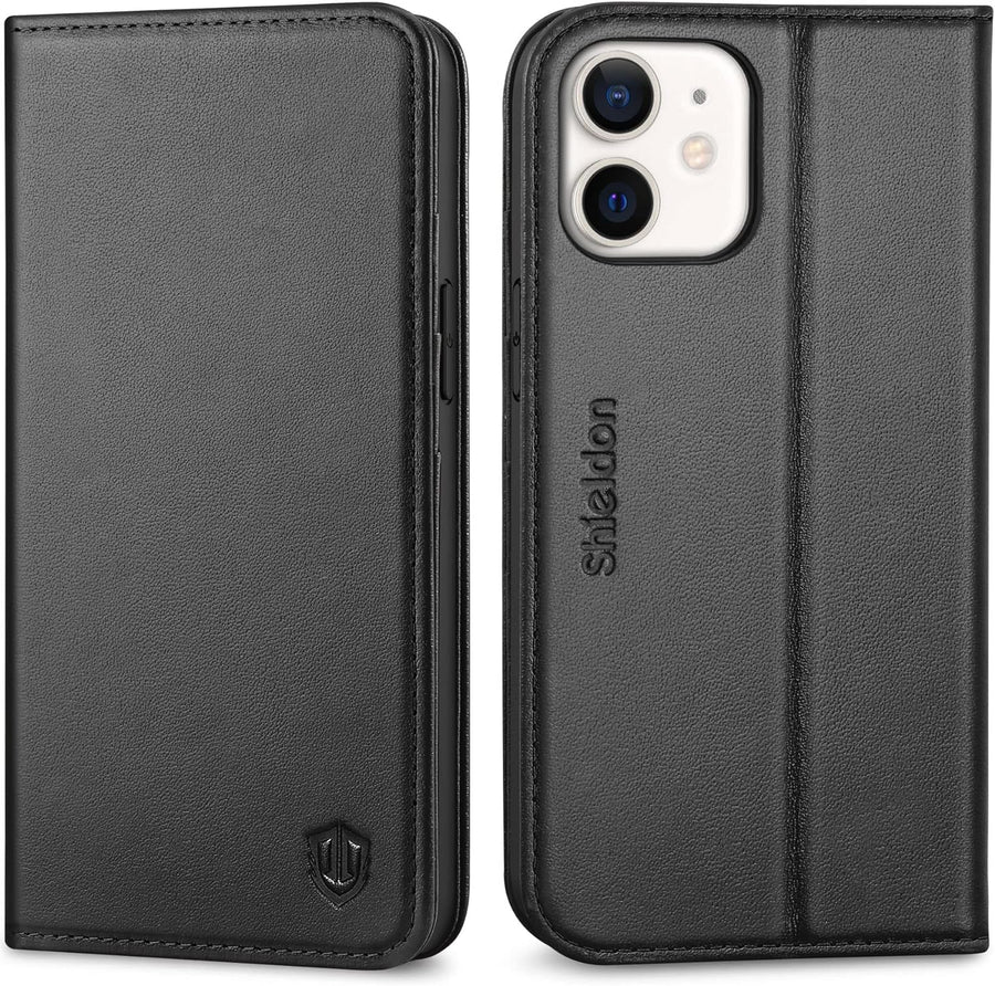 SHIELDON Hülle für iPhone 12 Lederhülle [Echtleder] [Lifetime Garantie] [RFID-Sperre] [Kartenfach] [