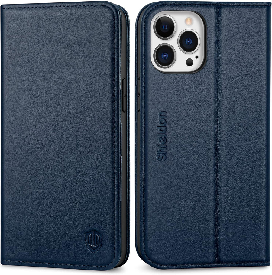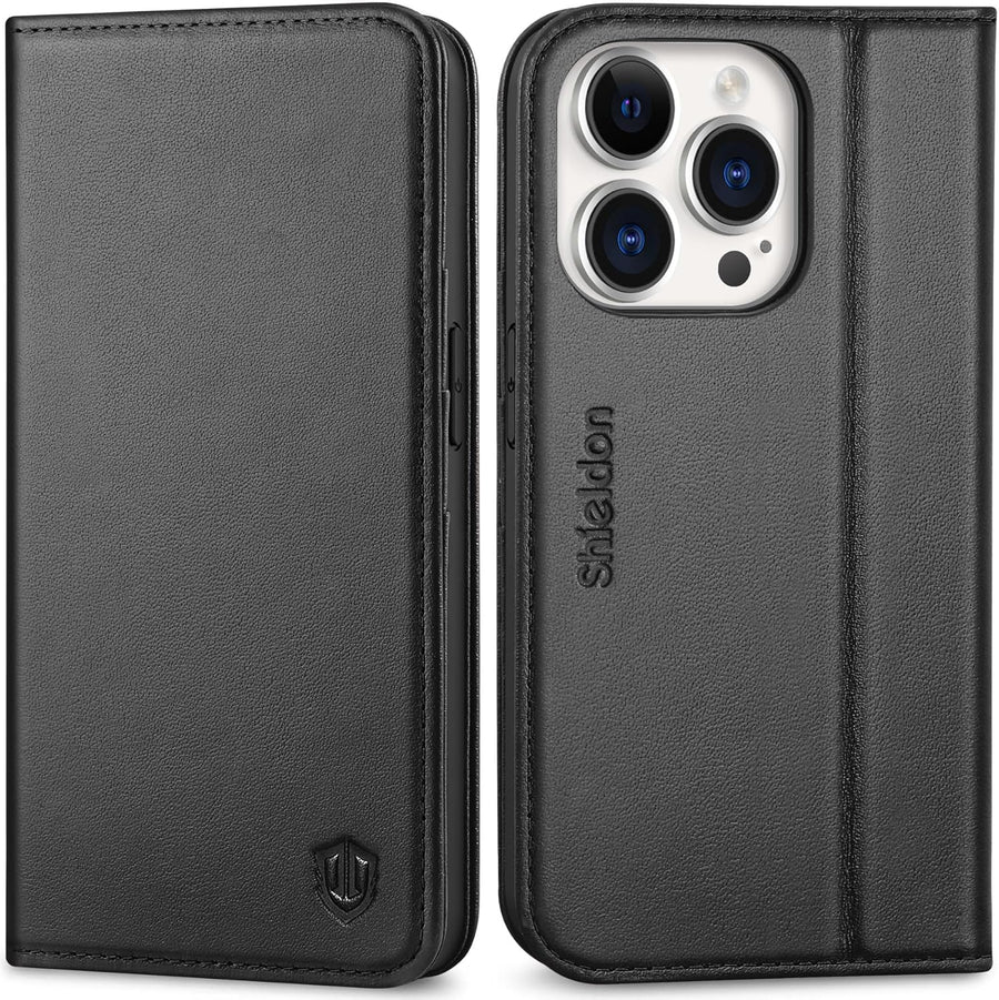 SHIELDON Hülle für iPhone 14 Pro Max Handyhülle [Erstklassig Echtleder] [Kartenfach] [Magnet] [Stand