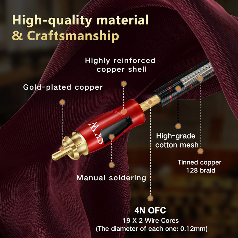 SKW Audiophiles Cinch Audio Kabel, 2 x Cinch zu 2 x Cinch Kabel mit OD 6mm Audiophile Cinch-Kabel (3