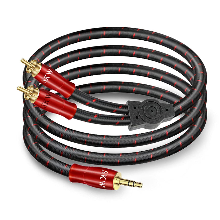 SKW Audiophiles Audio Kabel 3.5mm Klinke auf 2 Cinch Y Splitter Stereo Audio Kabel (2M, Schwarz) 2M
