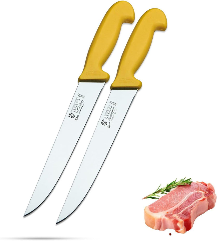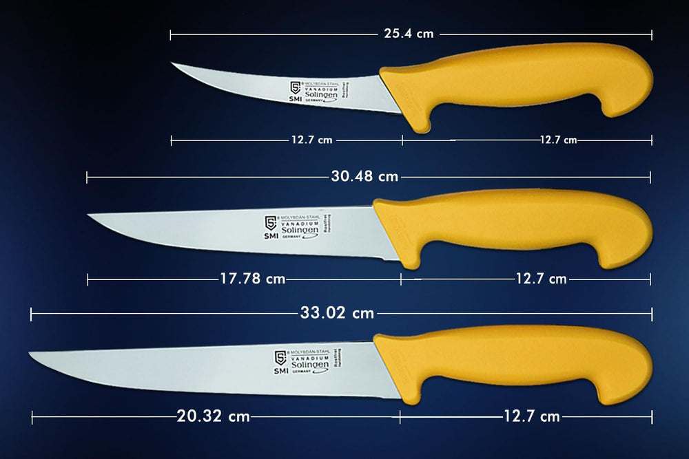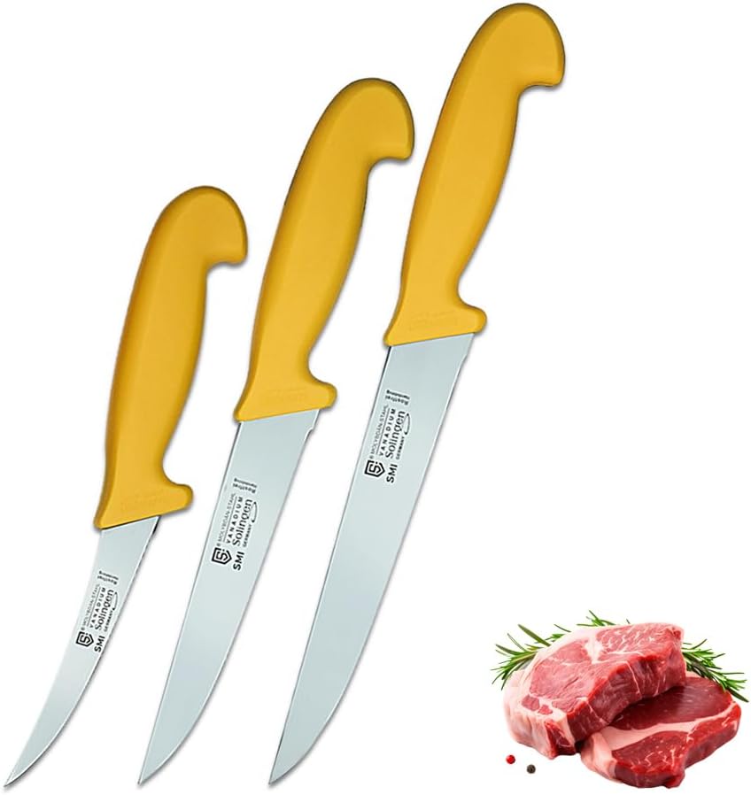 SMI - 3 Stück set Metzgermesser Solingen Fleischmesser Ausbeinmesser Gerade und Gebogen Edelstahl