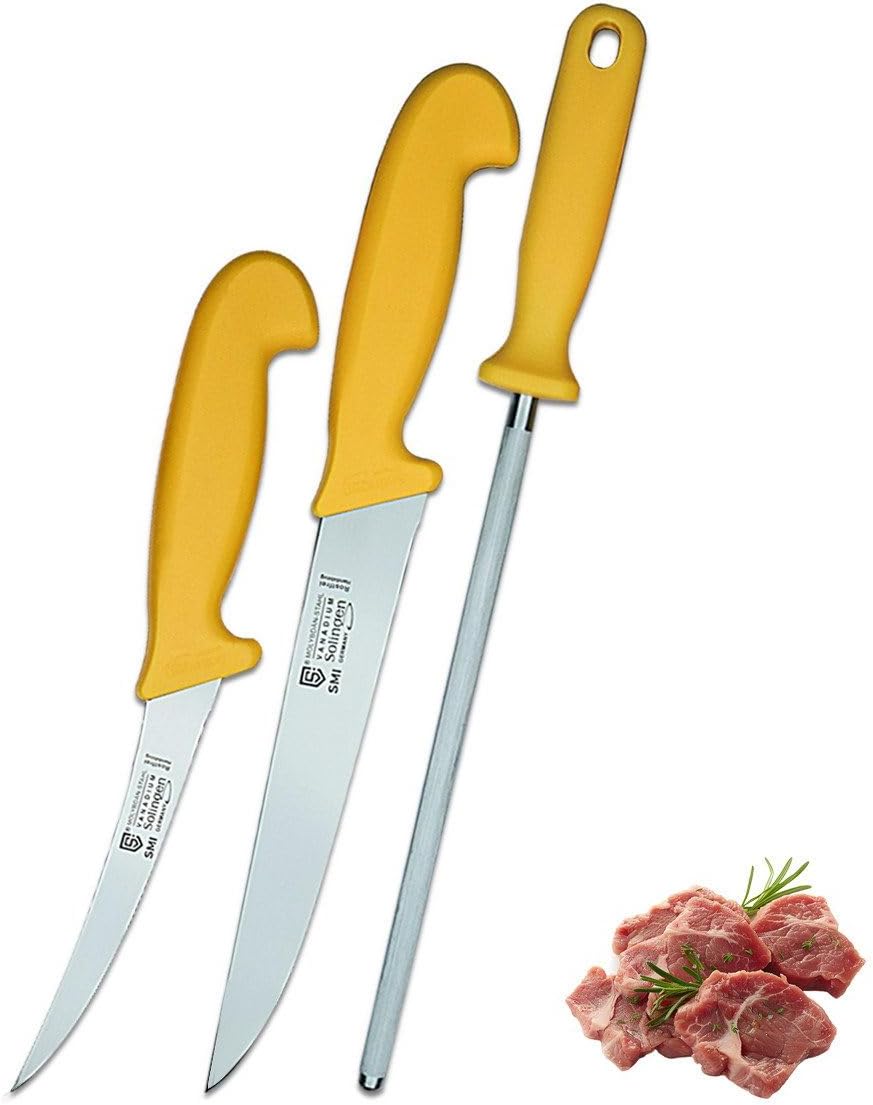 SMI 3 Stück Küchenmesser Set Solingen Metzgermesser Wetzstahl Ausbeinmesser Fleischermesser Kochmess