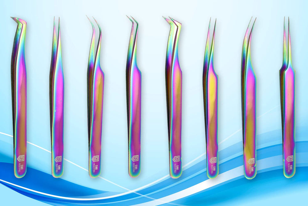 SMI 8 Stück Wimpern Pinzette Wimpernpinzette Wimpernverlängerung Pinzette Spitz Wimpernzange Gebogen