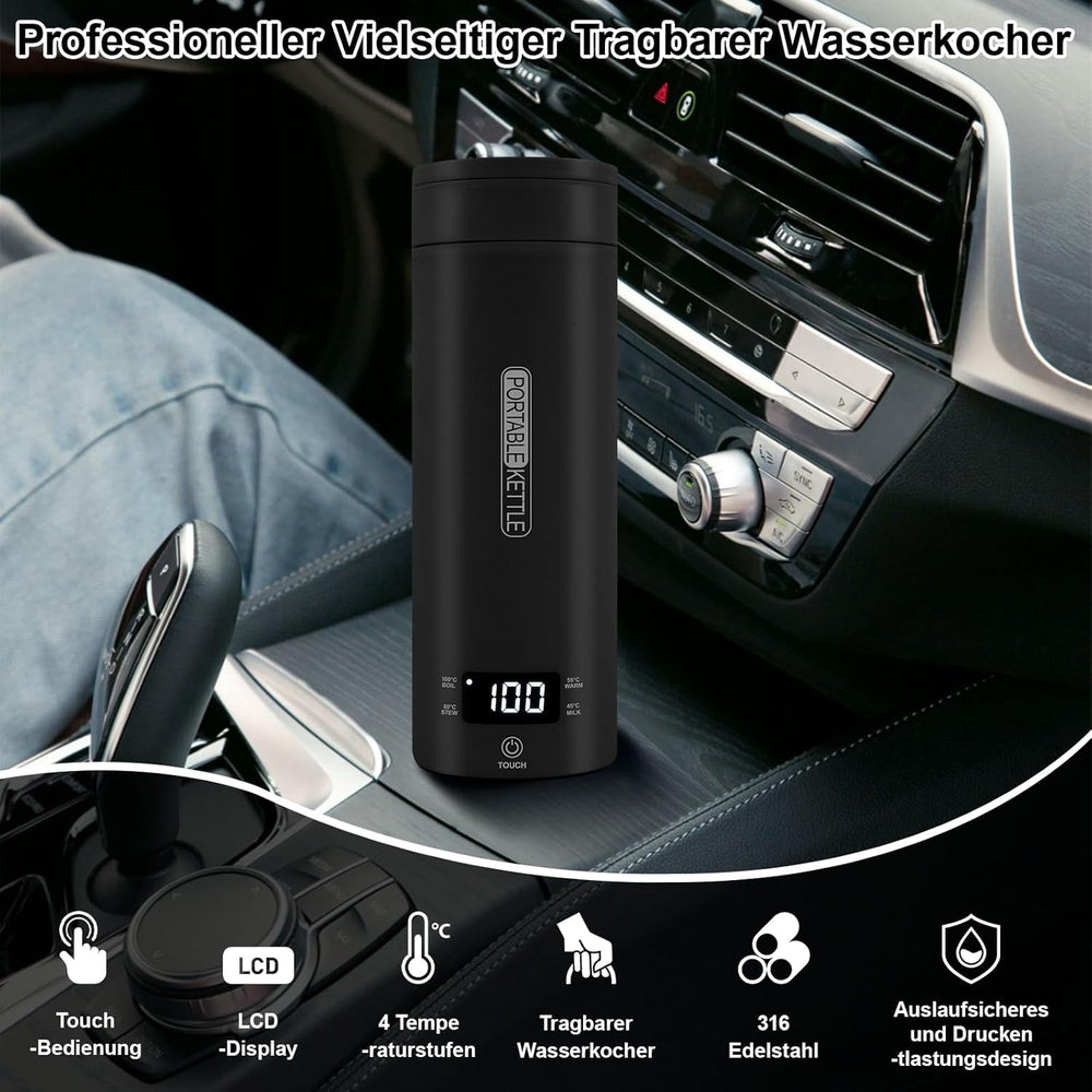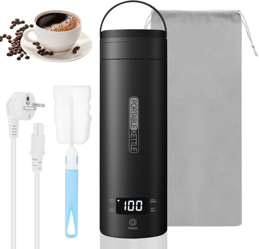 Elektrischer Reisewasserkocher Klein 500ml, Mini Wasserkocher Tragbar 316 Edelstahl Doppelschicht, T