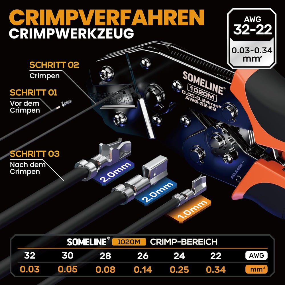 SOMELINE® Crimpzange Kabelschuhe Set, Crimpzangenset, Kabelschuhzange für 0,34-6mm² Kabelhülsen mit