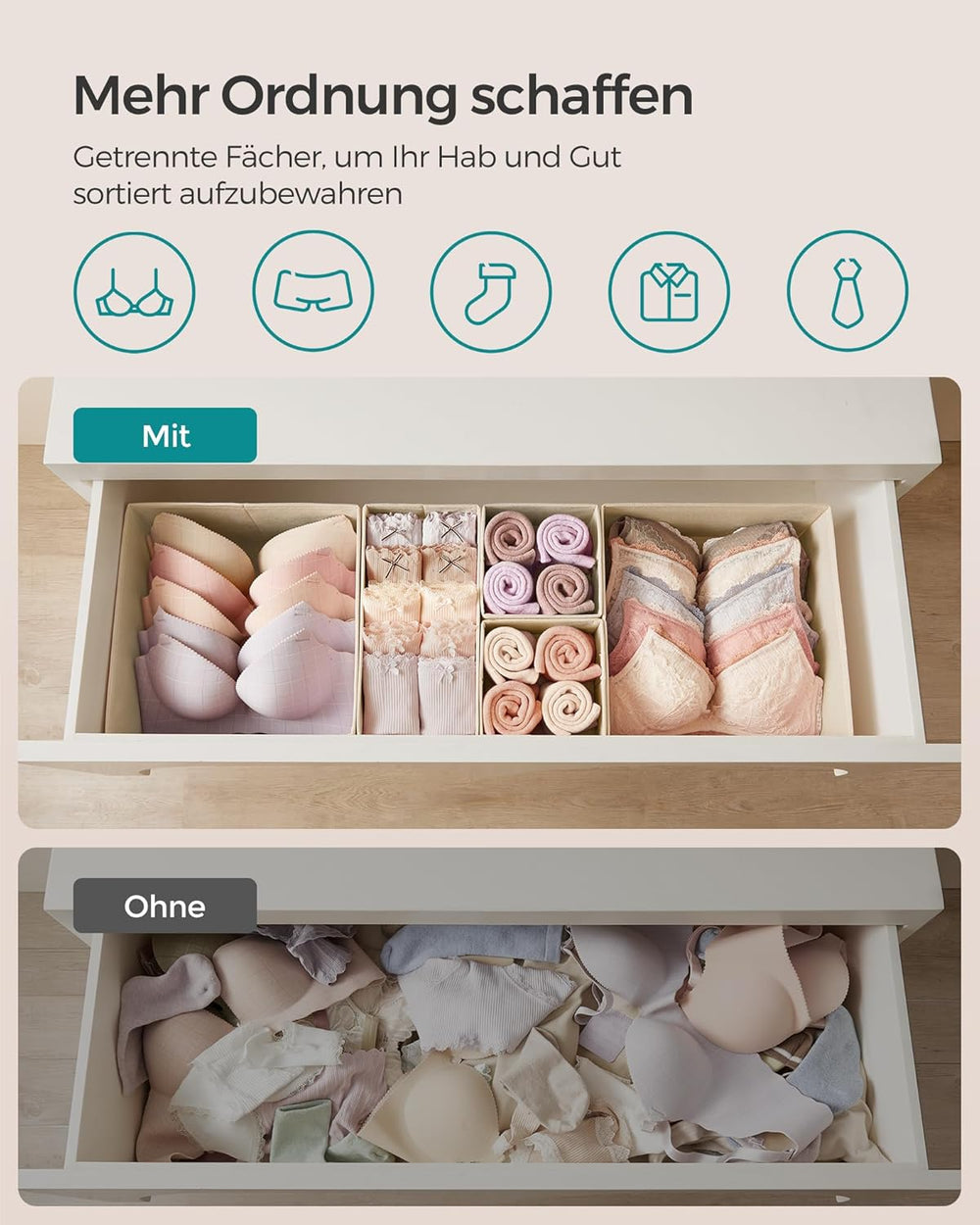 SONGMICS Aufbewahrungsbox für Schublade, 12er Set, Schubladen Organizer, Faltbox, Unterwäsche Organi