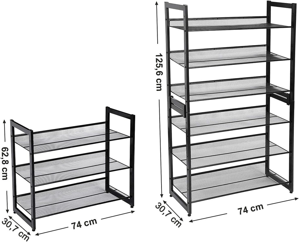 SONGMICS 3 Ebenen Metall-Schuhregal, Meshregal, verstellbare Ablage flach oder abgewinkelt Regalböde