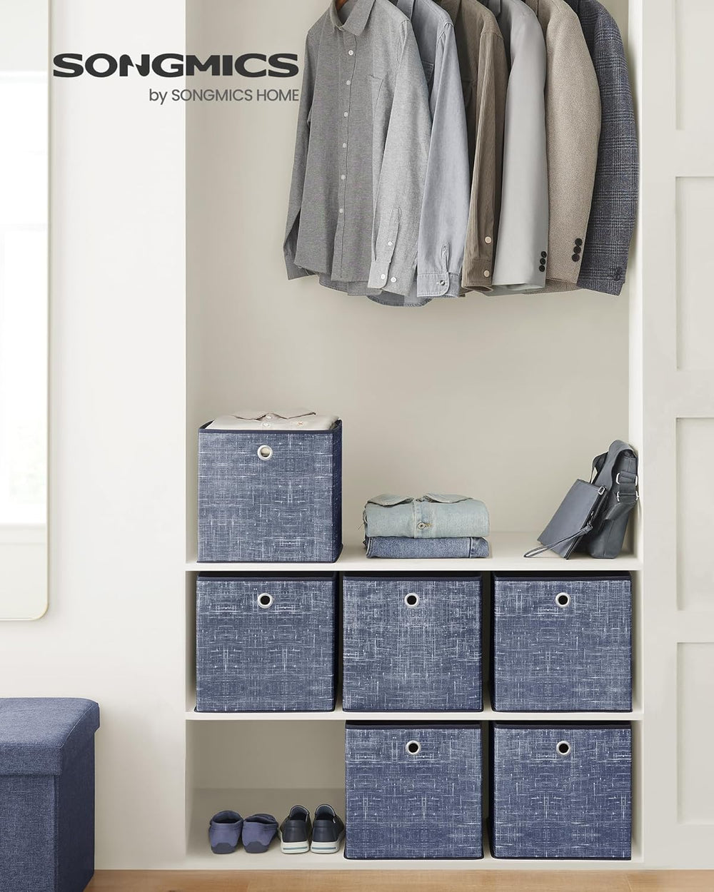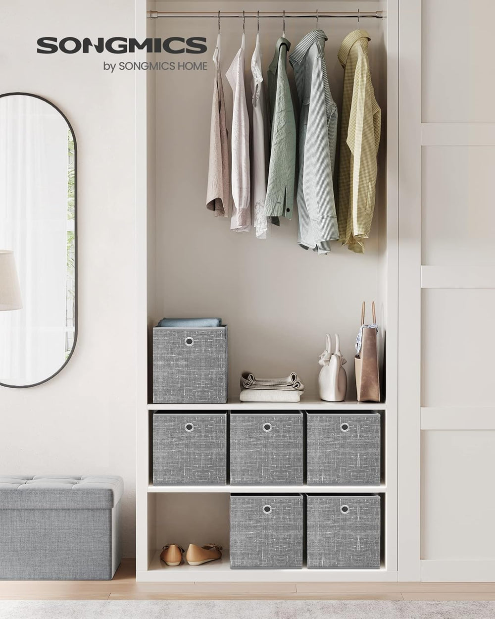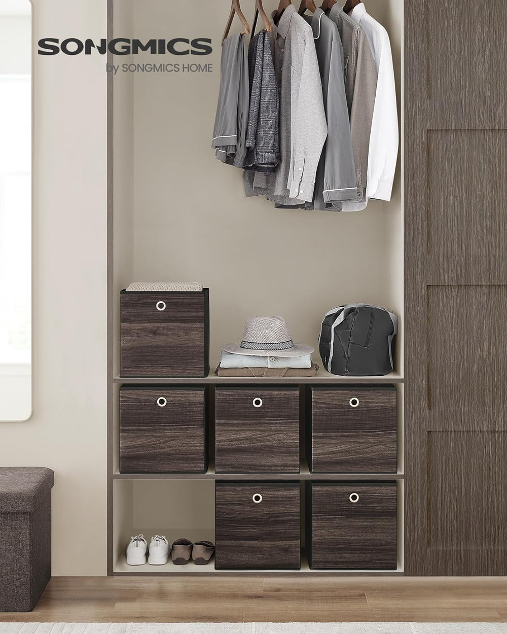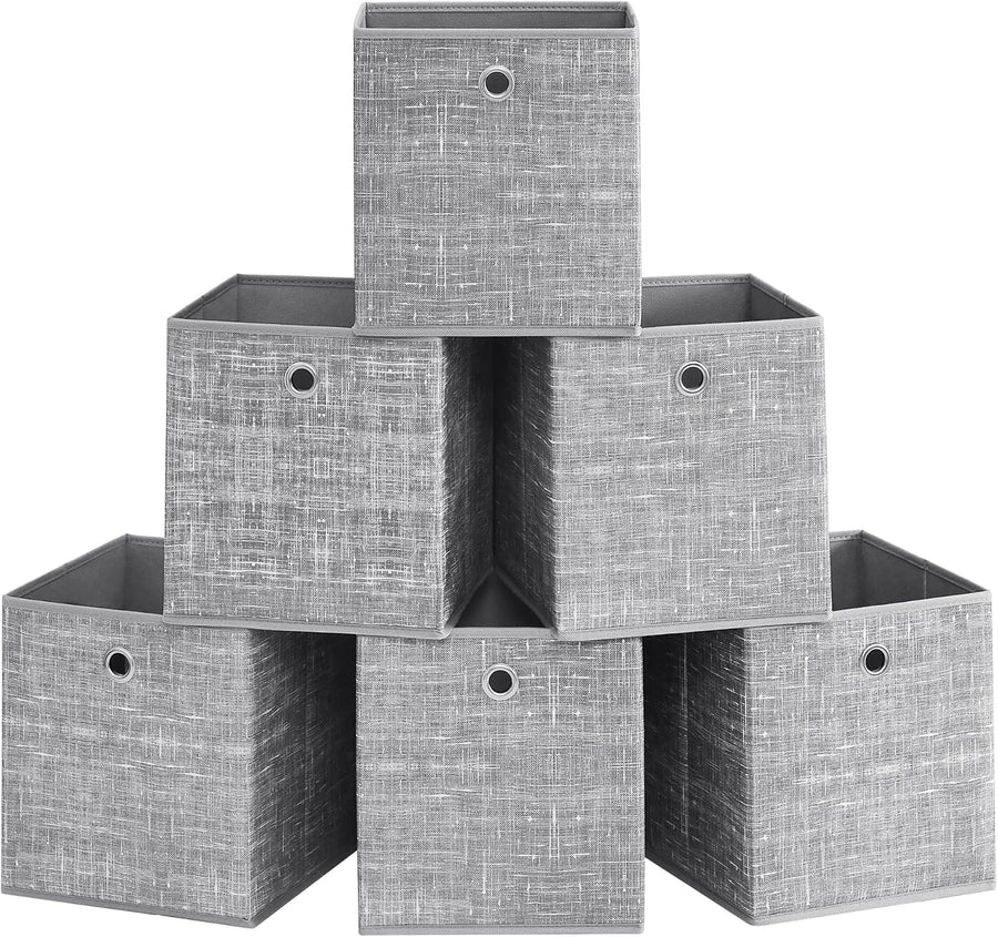 SONGMICS Aufbewahrungsbox, 6er Set, faltbare Stoffbox, Faltbox aus Vliesstoff, Würfel, Aufbewahrungs