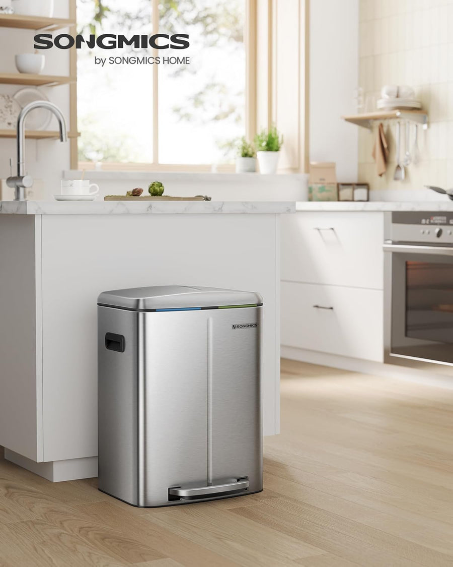SONGMICS 40 L Mülleimer mit 2 Fächern, 2 x 20 L, Abfalleimer, Treteimer aus Metall, Inneneimer aus K