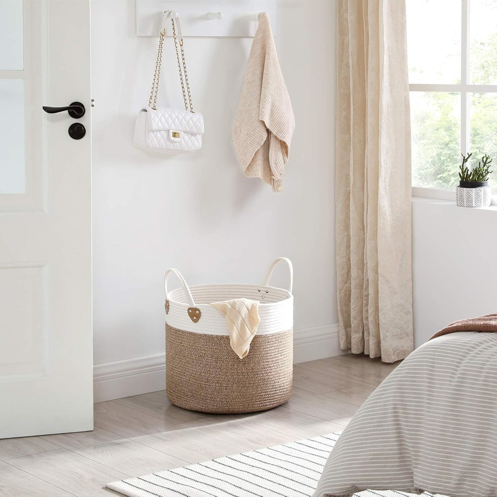 SONGMICS Baumwollseilkorb, Griffen, Wäschekorb aus Baumwolle, 50 L, für Spielzeug, Kleidung, Decken,