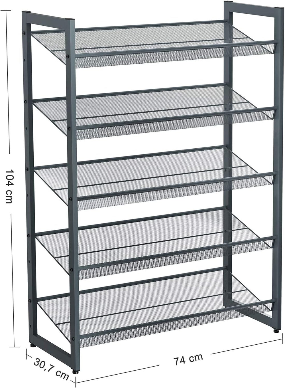 SONGMICS 5-stöckiges Schuhregal, erweiterbarer Schuhständer aus Metall, verstellbare Schuhablage, fü