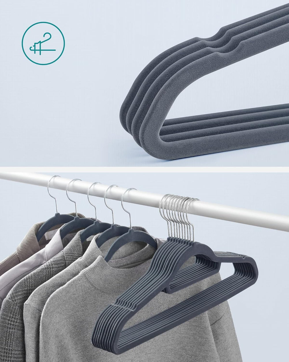 SONGMICS 50 Stück Kleiderbügel Samt, 0,6 cm dick, Anzugbügel Jackenbügel mit Rutschfester Oberfläche