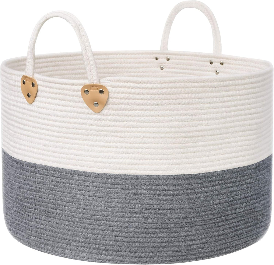 SONGMICS Baumwollseilkorb, Wäschekorb mit Griffen, Wäschekorb aus Baumwolle, 100 L, für Spielzeug, K