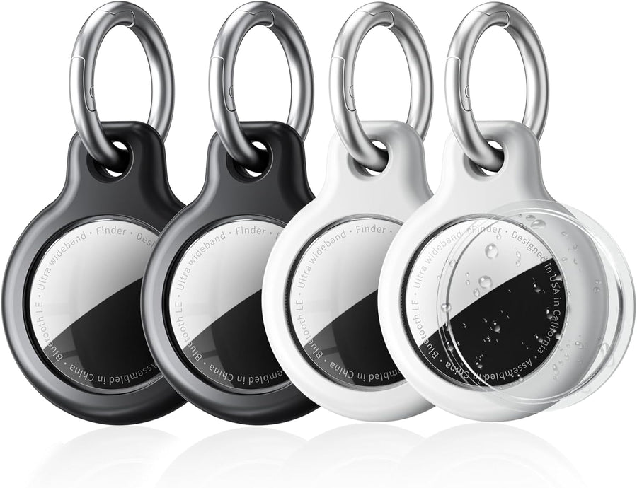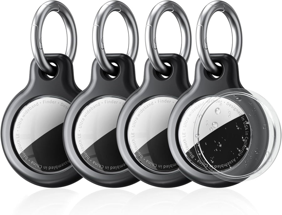 SPGUARD 4er Pack Air Tag Anhänger für Kratzschutz, wasserdichte Hülle für AirTag mit Edelstahl Keych