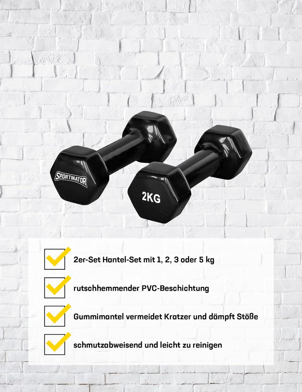 SPORTINATOR Hantel 2er-Set 1, 2, 3 oder 5 kg Hantelset, schwarz fürs Homegym, Studio oder zu Hause i