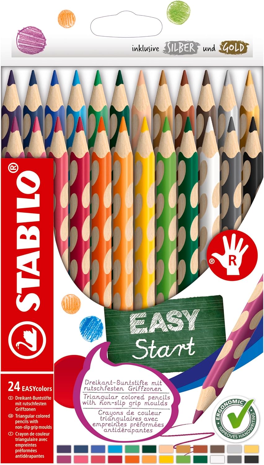 Ergonomischer Buntstift für Rechtshänder - STABILO EASYcolors - 24er Pack - mit 24 verschiedenen Far