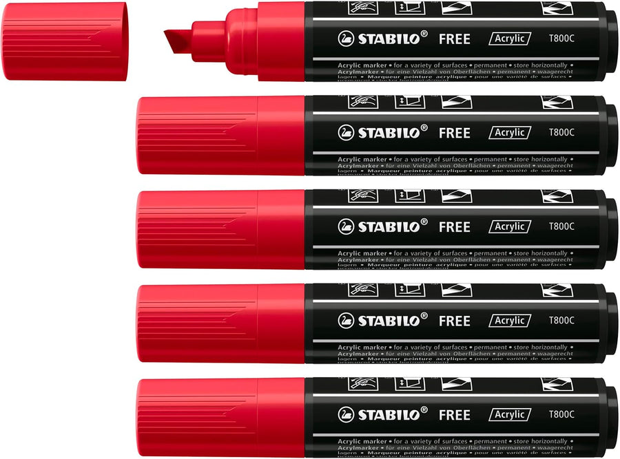 Acrylmarker - STABILO FREE Acrylic - T800C Keilspitze 4-10mm - 5er Pack - karmin
