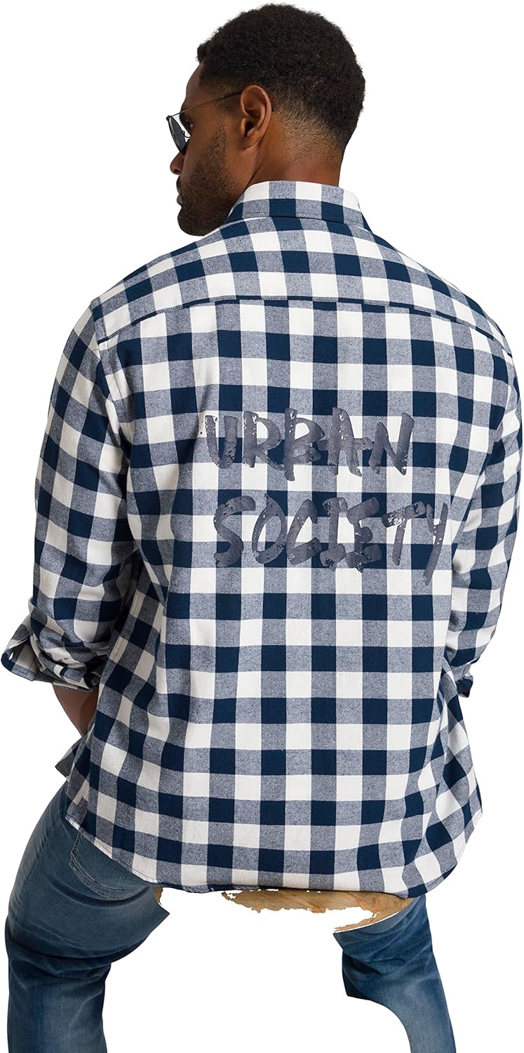 STHUGE Karohemd, Langarm, Modern Fit, Kentkragen, Rücken Print, bis 8 XL 810904 XXL Mattes Nachtblau