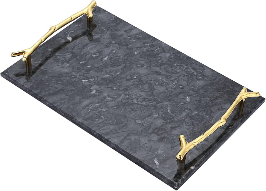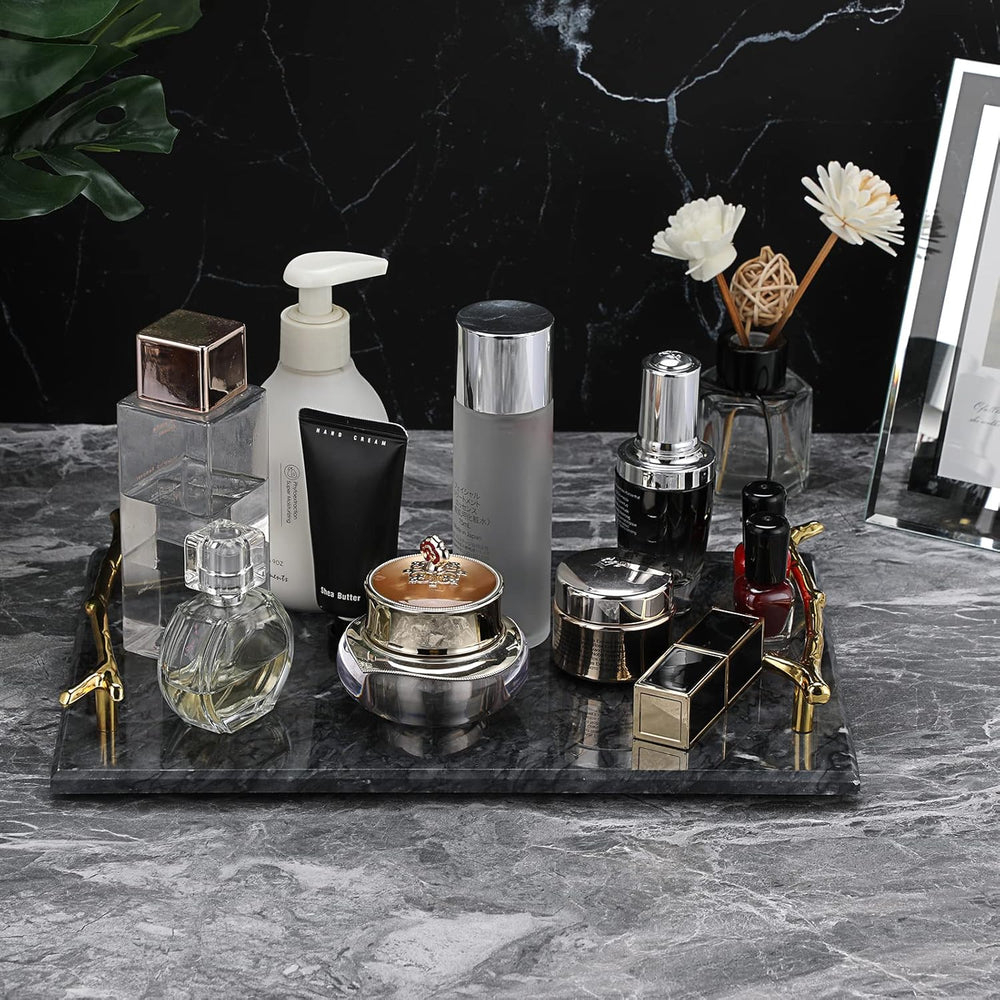SUMNACON Rechteckig Serviertablett aus Marmor mit Blattgriffe Servierplatte Tablett Schmuckteller fü